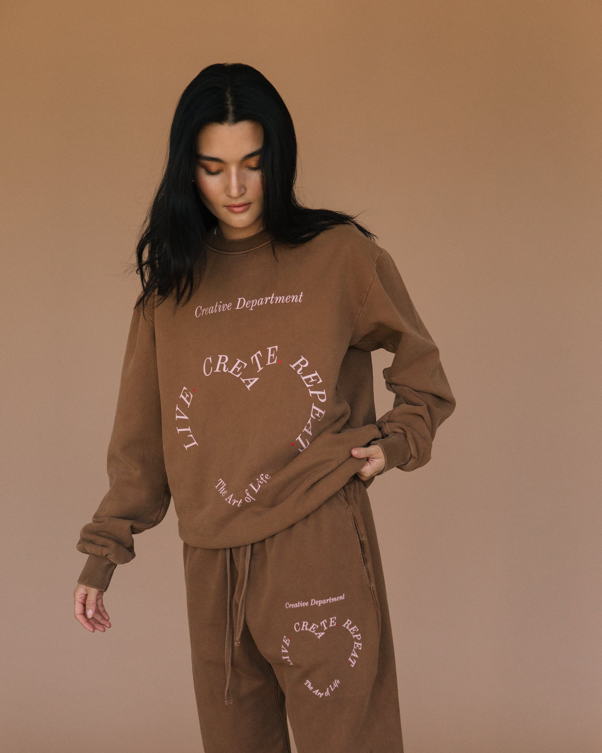 Like milk poured into your morning coffee, our Cocoa set brings a beautiful chocolatey softness to an already incredibly cozy outift.